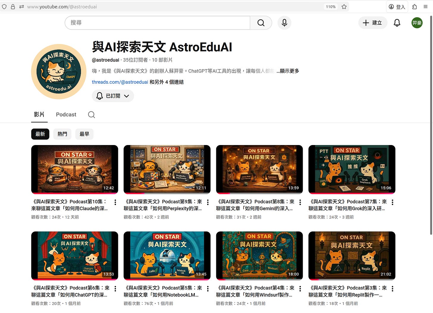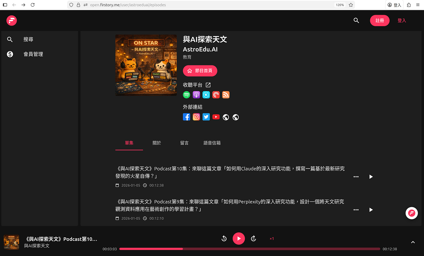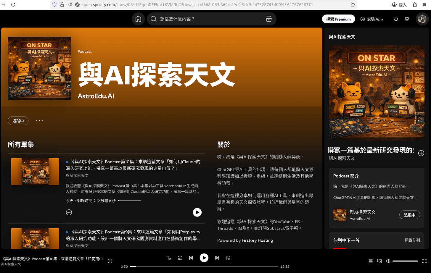 🔗《與AI探索天文》Podcast上架平台的彙整頁面 https://open.firstory.me/user/astroeduai/platforms
