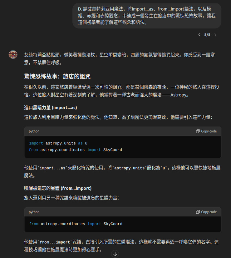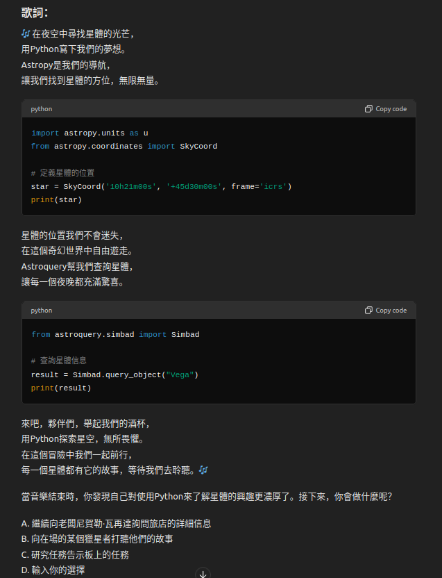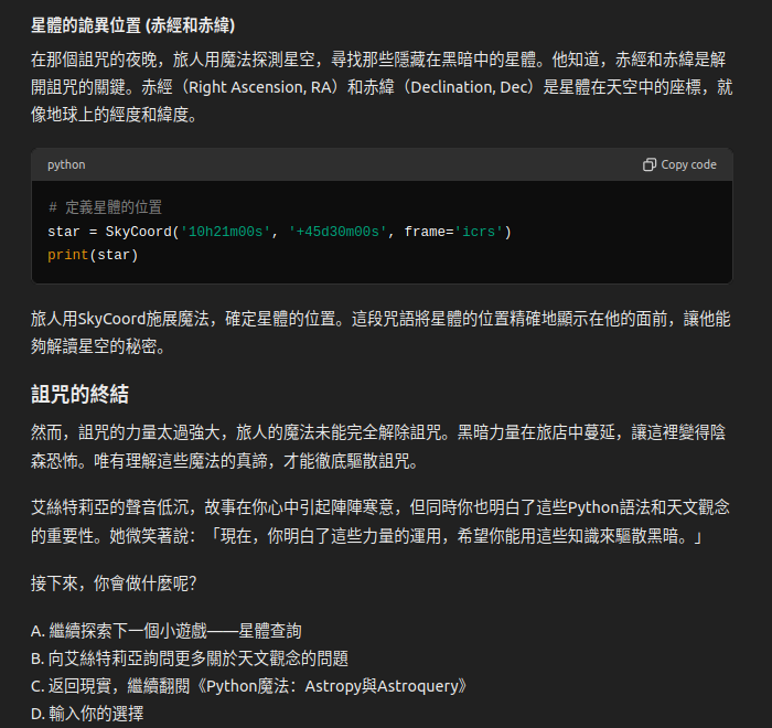 還不知道什麼是《獵星者旅店》嗎?先來瞧瞧「免費版的ChatGPT使用者現在也可以進入《獵星者旅店》學習Python和天文囉!」這篇文章吧